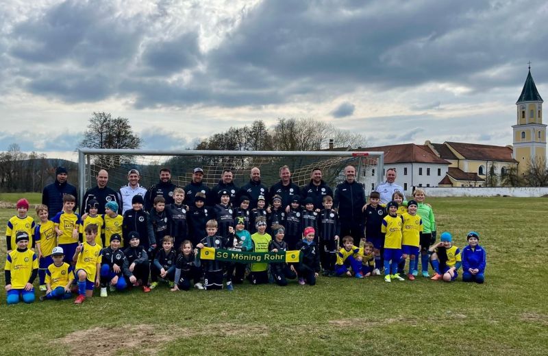 Die Kreisligaherren der SG Möning/Rohr übernehmen Trainingspatenschaften bei den Nachwuchskickern. Die Kinder feuern bei den Spielen immer fleißig die Herren an, nun soll der Spieß umgedreht werden. Jugendleiter Daniel Großhauser brachte diese Idee ein und der Trainer der Ersten, Manuel Fersch, war hierfür sofort zu begeistern. So schaute er am 07.05.2025 direkt beim Training der E-Jugend zur Überraschung aller Kids vorbei und wirkte gleich selbst aktiv mit bei den abwechslungsreichen Trainingsformen. Die Kinder waren begeistert von der Ansprache des Herrentrainers und lauschten erwartungsvoll seinen motivierenden Worten. Und dieser Besuch brachte den Jungs dann auch noch unmittelbar erfolgreiches Glück für die E1 der U11, die die U11-Meisterschaft in der Gruppe U11/1 Mittel 4 Frühjahr 2025 siegreich einfahren konnte. Diesem ersten Trainingsbesuch folgte dann darüberhinaus noch eine komplett organisierte Trainingseinheit am 14.05.2025 mit Manuel Fersch sowie den Spielern Lukas Großhauser und Thomas Schmidt und ein Besuch des U11-Meisterschaftsspiels am 21.05.2025 gegen Beilngries II (6:2). Verschiedene Herrenspieler werden nun in den nächsten Wochen regelmäßig bei einem Training oder einem Spiel der diversen Jugendteams vorbeischauen und die Jugendspieler tatkräftig durch Mitwirken oder Anfeuern unterstützen.